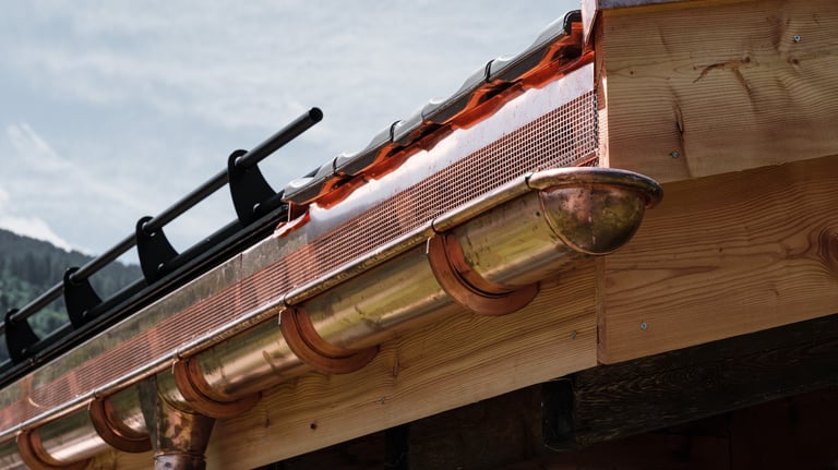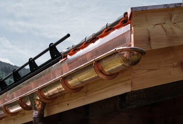 Unsere Spengler verwenden Kupfer für Bleckkamine, Dachrinnen und Fallrohre. Unsere Arbeit besticht durch Langlebigkeit und zeitlose Ästhetik. Das Material ist witterungsbeständig, formbar und entwickelt mit der Zeit eine charakteristische Patina, die jedes Gebäude optisch aufwertet.